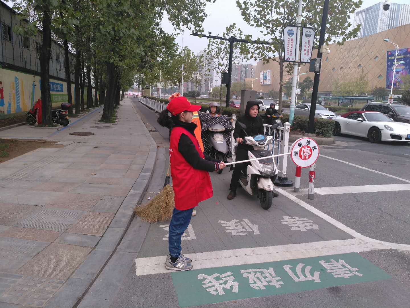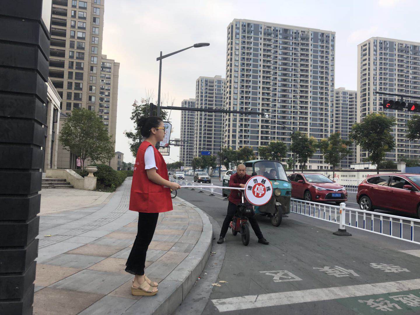 根据金华市机关工委2018年9月下发的“关于实行市区路口文明出行单位共建共治活动的通知”,应创建全国文明城市工作的需要,外语系教工党支部从2018年9月18日起(约10月底结束)开始组织安排党员教师志愿者参加文明劝导活动。我系20余名党员教师积极主动参与该活动,活动中,教师志愿者穿戴红色志愿服帽从7点左右开始直到8点30早高峰结束在栖凤街与李渔东路交叉路口手持引导牌,站立在人行横道边协助交警对非机动车辆和行人违反交通规则和车辆右行礼让行人方面进行劝阻和提示,引导市民有序文明过马路,帮助老人小孩过马路,并对闯红灯、乱穿马路、逆向行驶等不遵守交通规则的群众进行引导和教育,用实际行动弘扬志愿服务理念,让广大市民了解文明城市内涵,创造安全、畅通的道路交通环境。与此同时,教师志愿者们会在下午4点前提前完成工作,在晚高峰前投身于交通劝导活动中去。从4点30开始志愿者们伴着夕阳不辞劳苦,在金华市街头,以挺拔的身姿,亲和的语气提醒着来去过往奔走在斑马线上的行人遵守交通规则,开开心心出门,平平安安回家。引导市民和非机动车车主切实践行文明交通规则,做到文明出行、文明驾驶、文明停车、文明举止等。栖凤街和李渔东路交叉路口是城区交通比较繁忙的路段,交通复杂,人流量大,志愿者们一张张温馨的笑脸,一句句恳切的话语,在深秋给予了市民极大的温暖,也成为街头一道亮丽的风景线。