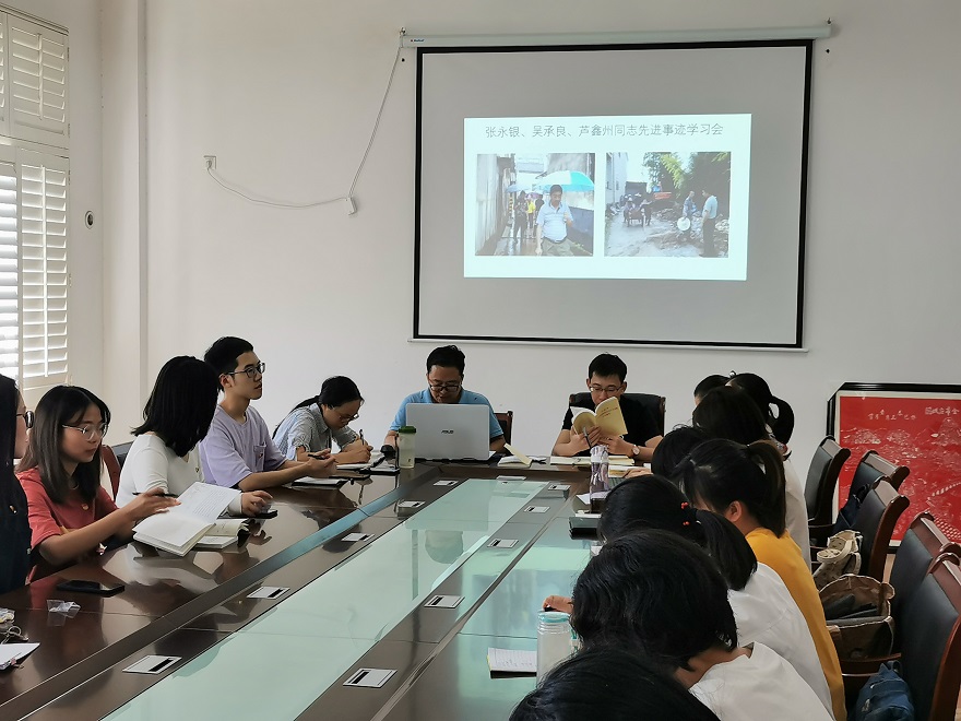 最后,吴国清同志主持了张永银、吴承良、芦鑫州同志的先进事迹学习会,传达了三位同志在各自的工作岗位上的优秀事迹,他们的所作所为诠释了新时代党员应有的担当和责任。各位党员同志听完张永银、吴承良、芦鑫州同志的先进事迹后,都深表赞叹并下定决心,大家都要积极向金华市三位优秀的共产党员前辈同志学习,在自己的工作岗位上恪尽职守,真真切切为人民服务!不过大家也深有感叹,各位教师在为工作岗位努力工作和做出贡献的同时,也要注意自己的身体、做到劳逸结合。