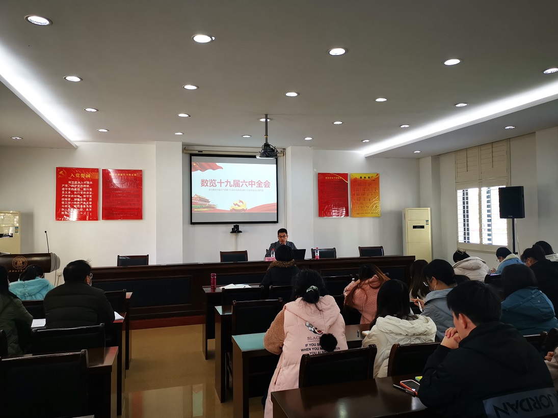 钟主任以《数览十九届六中全会--学习贯彻中国共产党第十九届中央委员会第六次全体会议公报内容》为主题,以九个重要数字为脉络结构,从全会的重要性、核心内容,以及中国共产党百年奋斗的重大成就、历史意义、历史经验等方面,对党的十九届六中全会精神作了深入系统的解读。本次宣讲活动课主题鲜明、内涵丰富、重点突出,政治性、理论性、指导性强,对学习和理解十九届六中全会精神有深的意义,受到全体与会师生党员的热烈欢迎和广泛好评。