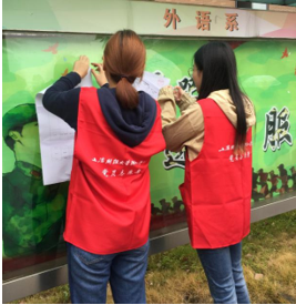 首先,在支部书记的集中号召下,外语系全体学生党员领取党员志愿者服并分配了活动任务。